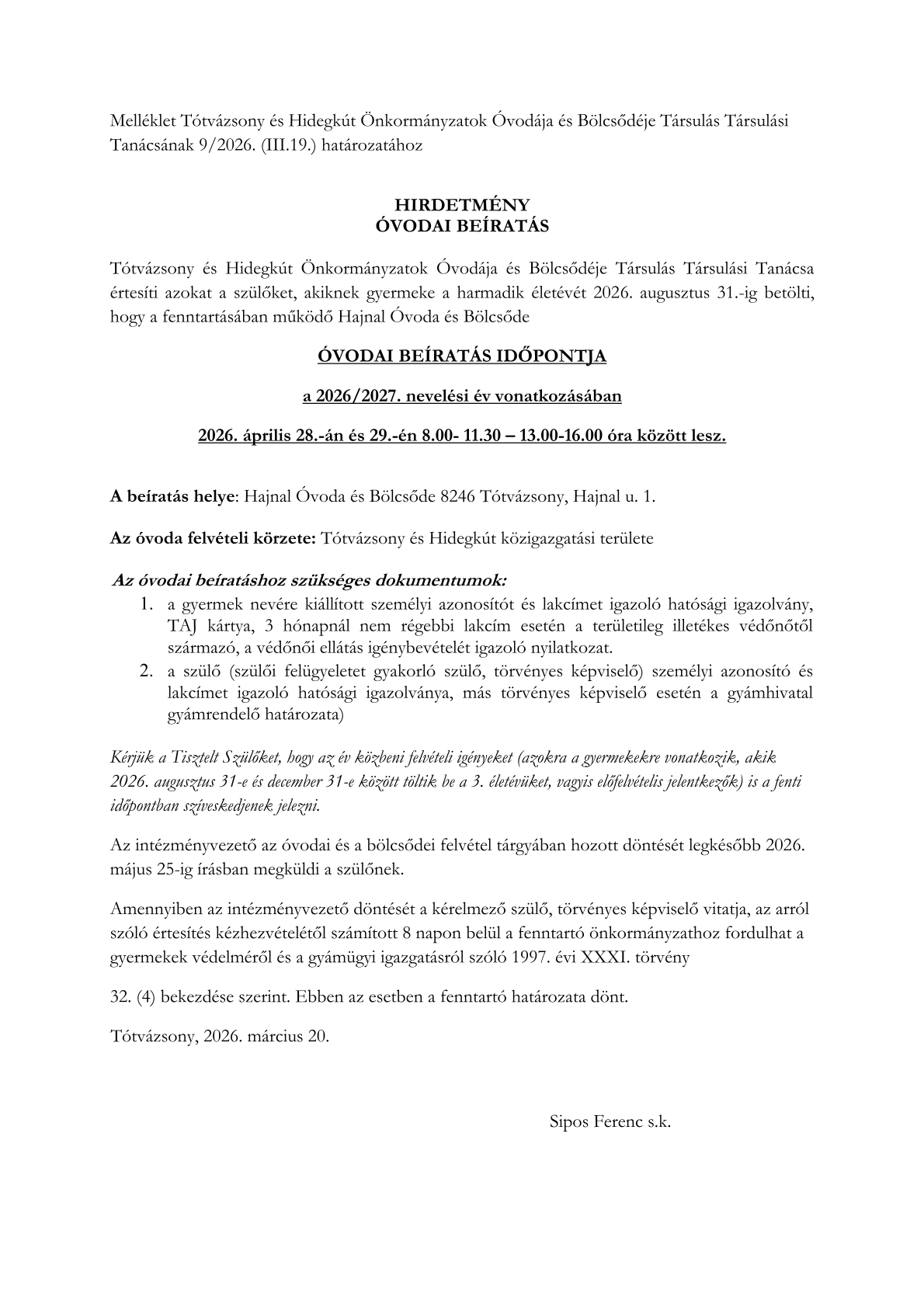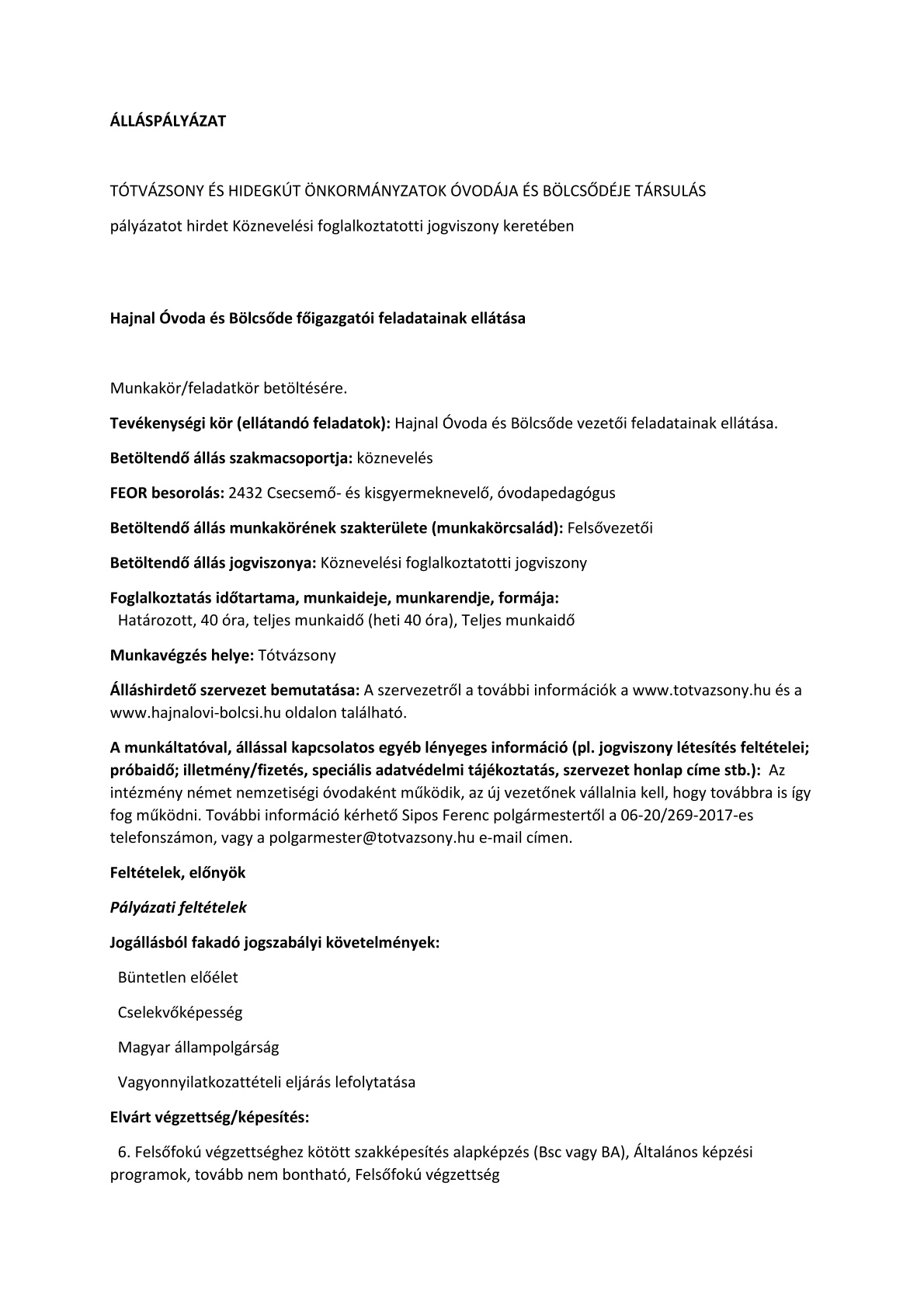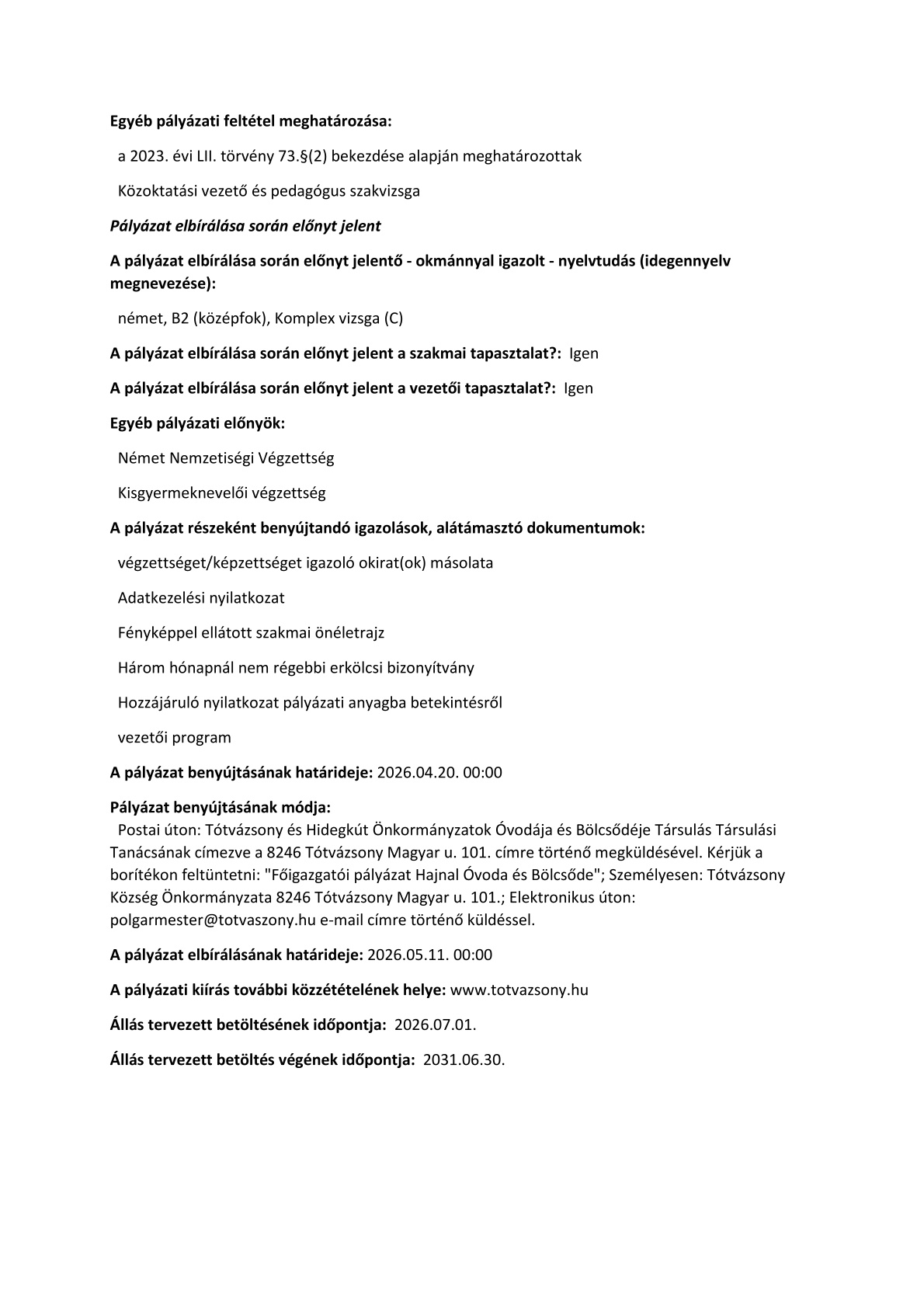Üdvözöljük a Tótvázsonyi Hajnal Óvoda és Bölcsőde honlapján!